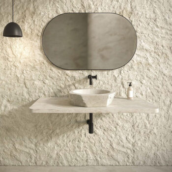 Borrowed Earth brings nature into living spaces through surfaces and sculptures crafted from natural stone. The Flute Series is distinguished by its vertical grooves and ribbed texture, embodying a harmonious blend of simple architectural forms and noble materials. Its design celebrates timeless and iconic shapes, creating a striking dimensional presence.
