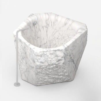 Borrowed Earth brings nature into living spaces through surfaces and sculptures crafted from natural stone. The Flute Series is distinguished by its vertical grooves and ribbed texture, embodying a harmonious blend of simple architectural forms and noble materials. Its design celebrates timeless and iconic shapes, creating a striking dimensional presence.